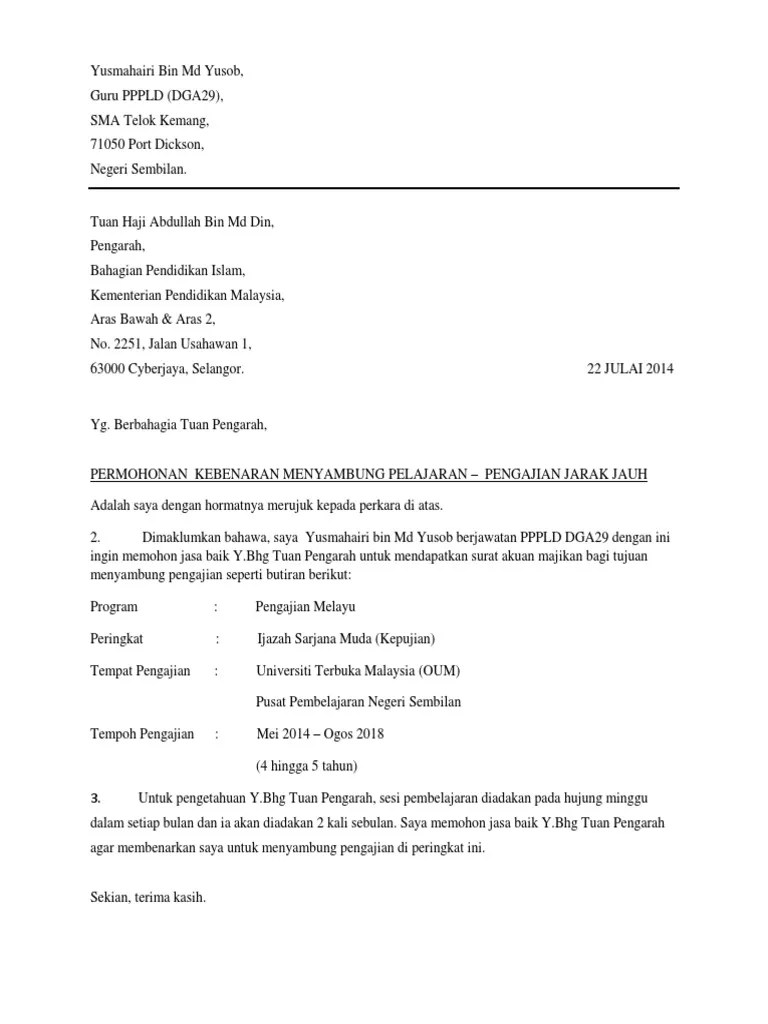 Surat rasmi sambung belajar lepasan, surat rasmi sambung belajar contoh surat iringan. Berbahagia tuan pengarah, · ijazah sarjana muda (kepujian).